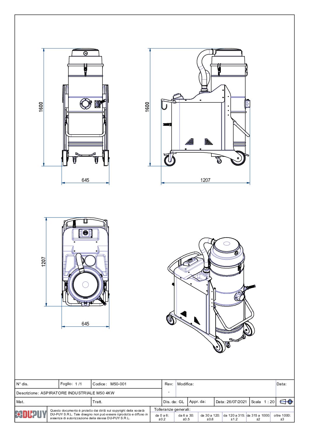 Appartenente alla gamma di aspirapolveri industriali con motore trifase di Dupuy, M50 è adatto a qualsiasi applicazione produttiva: officina, laboratorio, industria metalmeccanica, cementificio, carpenteria o bottega artigiana.