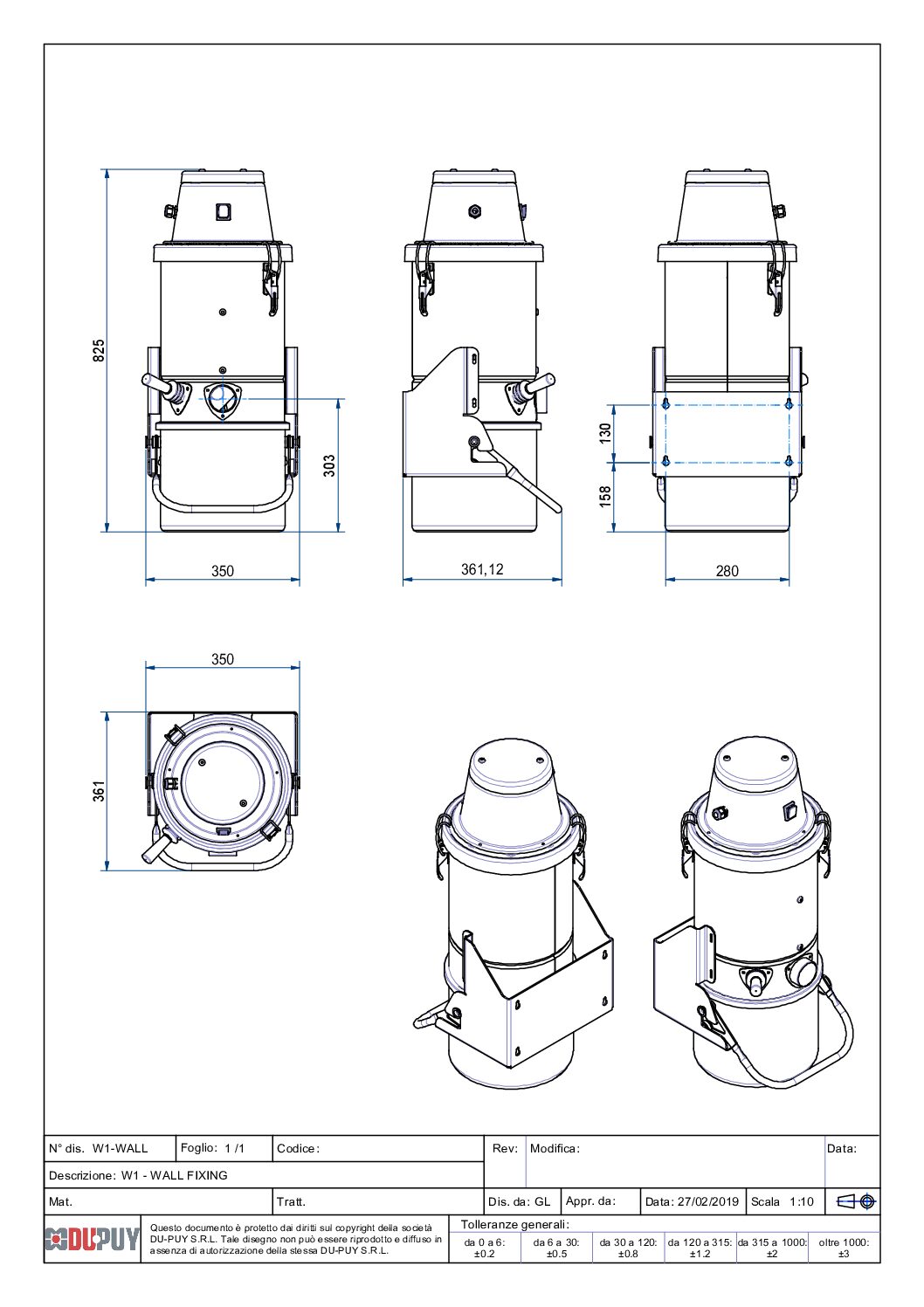 | W1 WALL MOUNTED aspiratore industriale per polveri, solidi e liquidi con fissaggio a parete | |