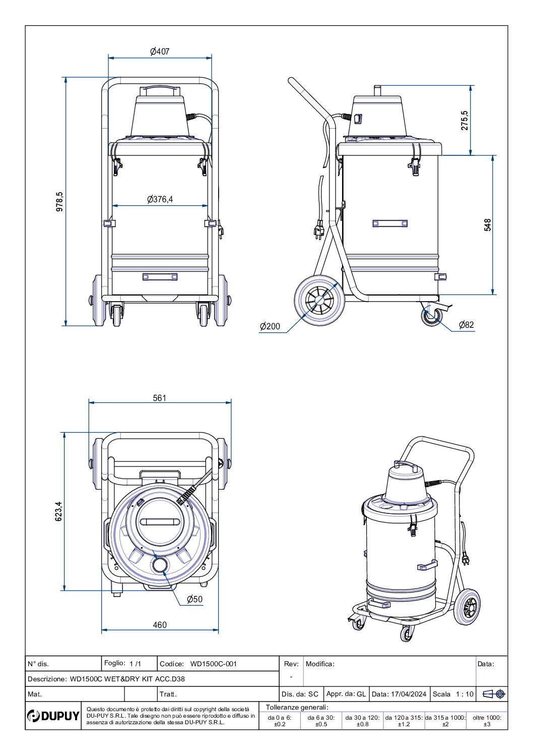 L’evoluzione definitiva dell’aspiratore WD 1500, grazie alla struttura carrellata che consente di ribaltare l’aspirapolvere con estrema semplicità.